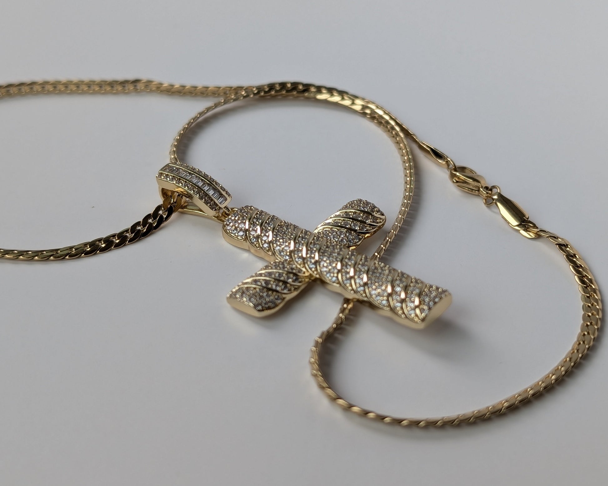 Bold and meaningful, Faith features a crystal-studded cross pendant with rope-like detail, suspended on a sleek gold-toned chain.