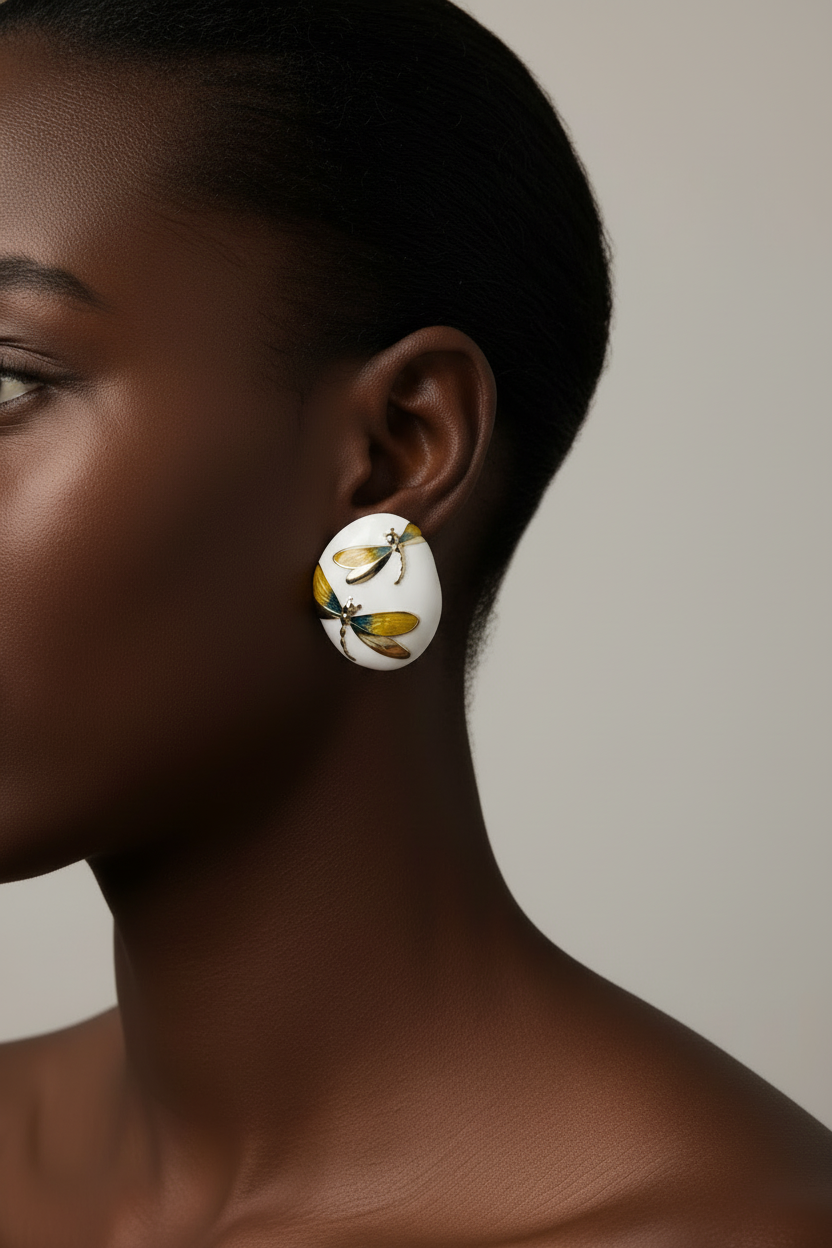 Imani earrings bring joyful energy with dragonflies in bold colours. Uplifting, spirited, and beautifully bright.