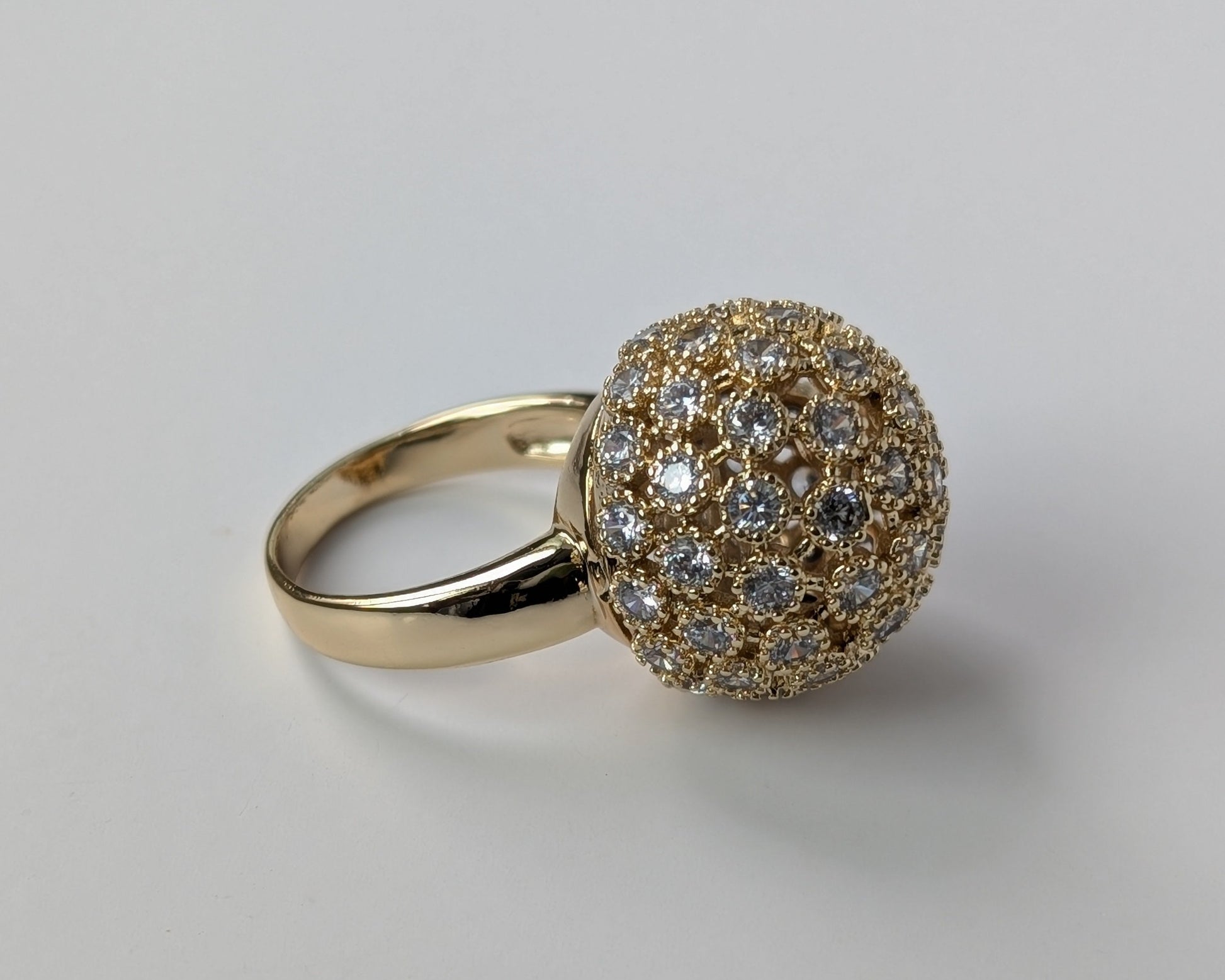 Makena’s dazzling dome design makes this ring a true showstopper. Covered in brilliant-cut crystals from every angle, it sparkles with joyful intensity.