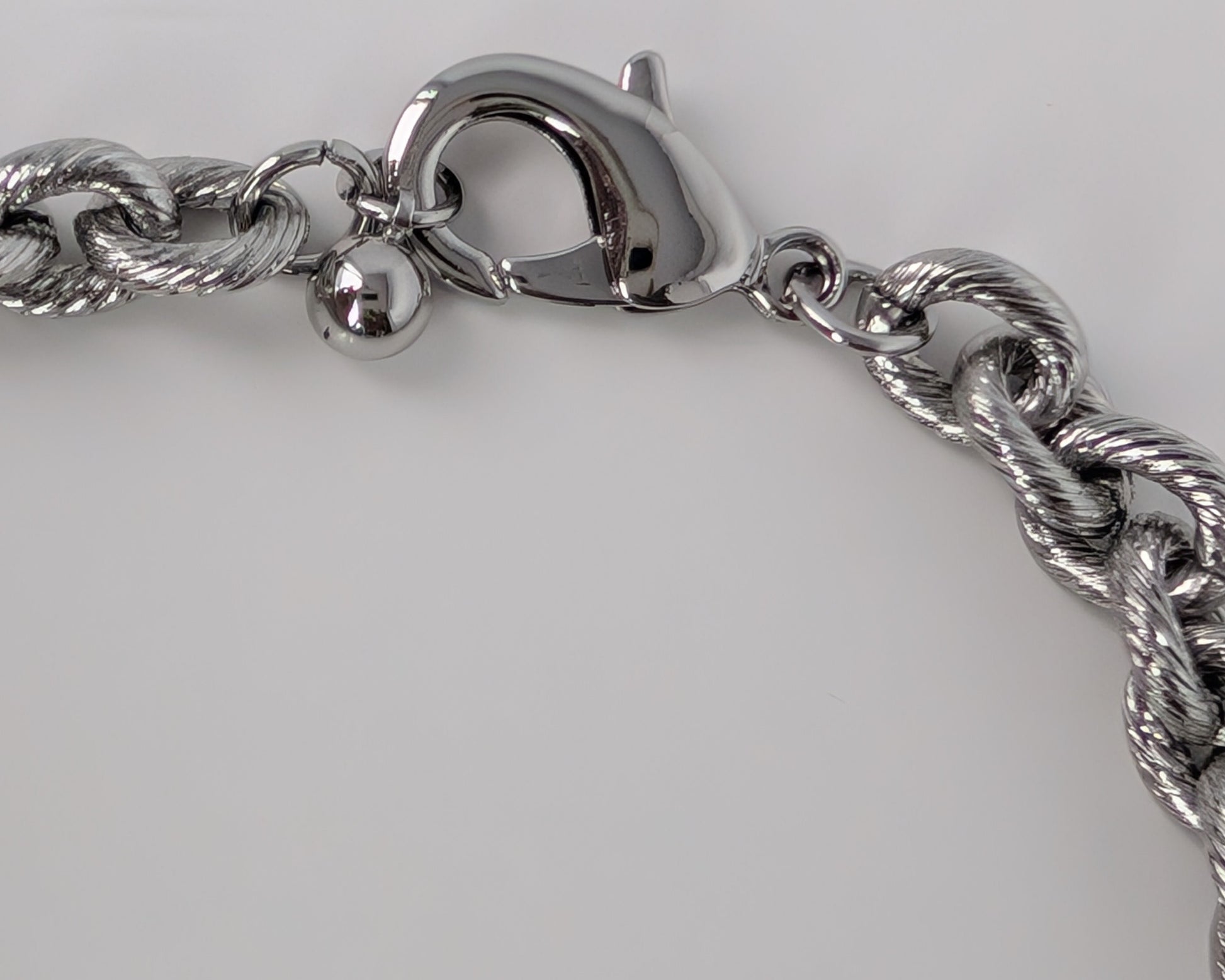 Elegant and cool-toned silver necklace with twisted rope detailing and soft sparkle.