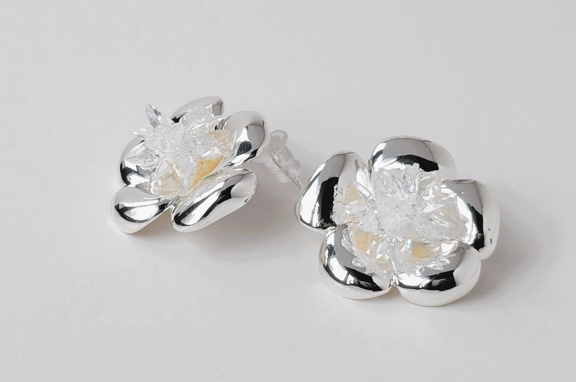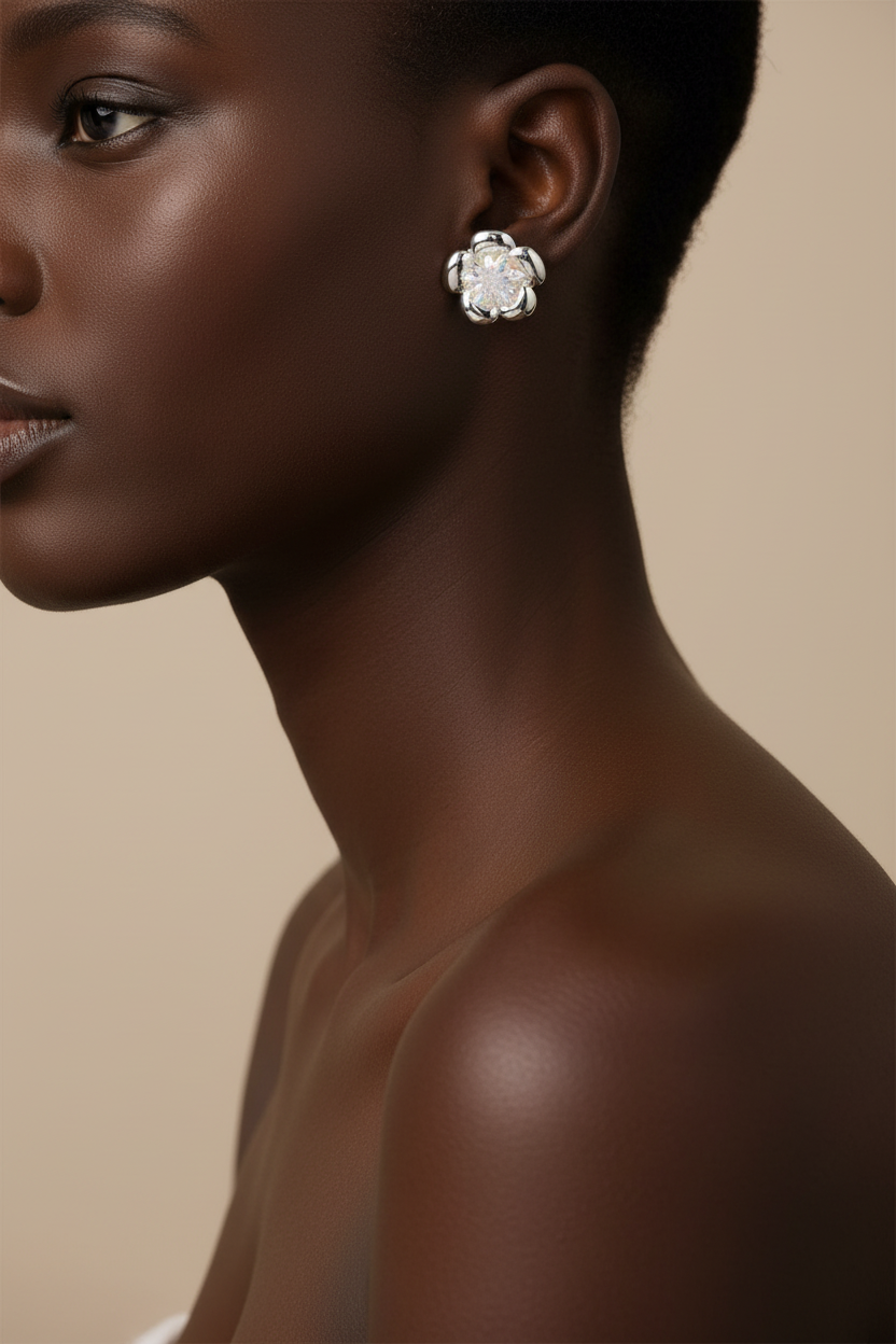 Neema earrings feature a delicate flower design with a sparkling center. Brings light, softness, and natural elegance to your everyday style.