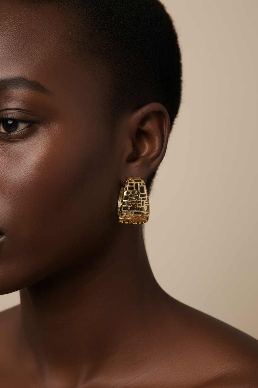 Shani earrings exude modern strength with their geometric, openwork gold pattern. They are perfect for women who make a statement with grace, style, and intention.